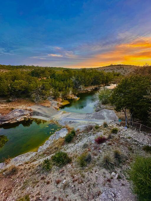 Wimberley Wellness is a one acre property tucked away in a canyon at the end of a quiet, dead-end road. We’re halfway between Wimberley and Hays City, just a 10 minute drive to both. It’s a perfect blend of hill country solitude and high quality restaurants, wineries, breweries, and parks. Our property drops down from the road towards the beautiful, spring-fed Lone Man Creek, which feeds into the Blanco River a few miles downstream. We’re located in an International Dark Sky Area (Wimberley won the International Dark Sky Place of the Year award in 2023!). There is very minimal development on neighboring properties, there are only a few spots on the property in which you can see any other homes in the canyon. It feels like you’re in your own world! With our secluded location in the hill country, you may spot resident foxes, deer, Painted Buntings, Purple Martins, turkeys, hummingbirds, or herons, all of which are routinely seen on our property. We gladly welcome pets, but please watch them carefully with the wildlife in mind. We also take pest control very seriously, but please remember you’re in the country. Keeping doors closed as much as possible will help to ensure the wildlife stays outside!