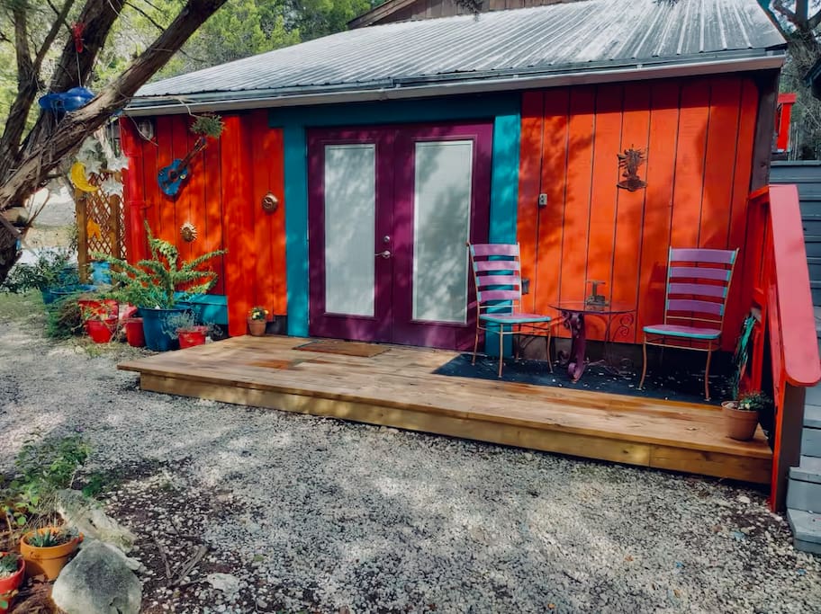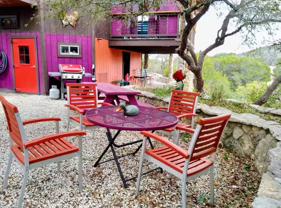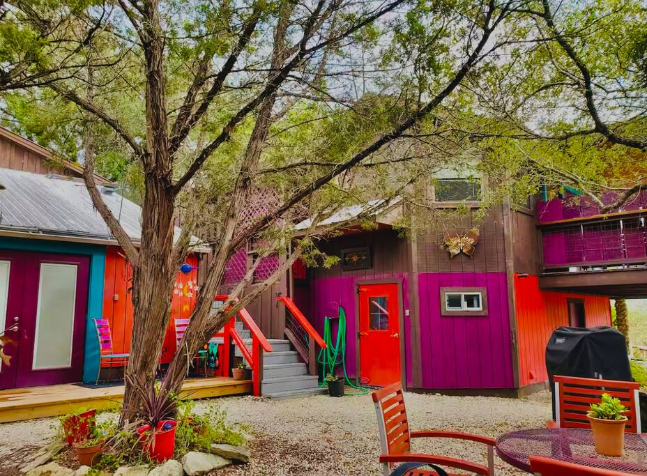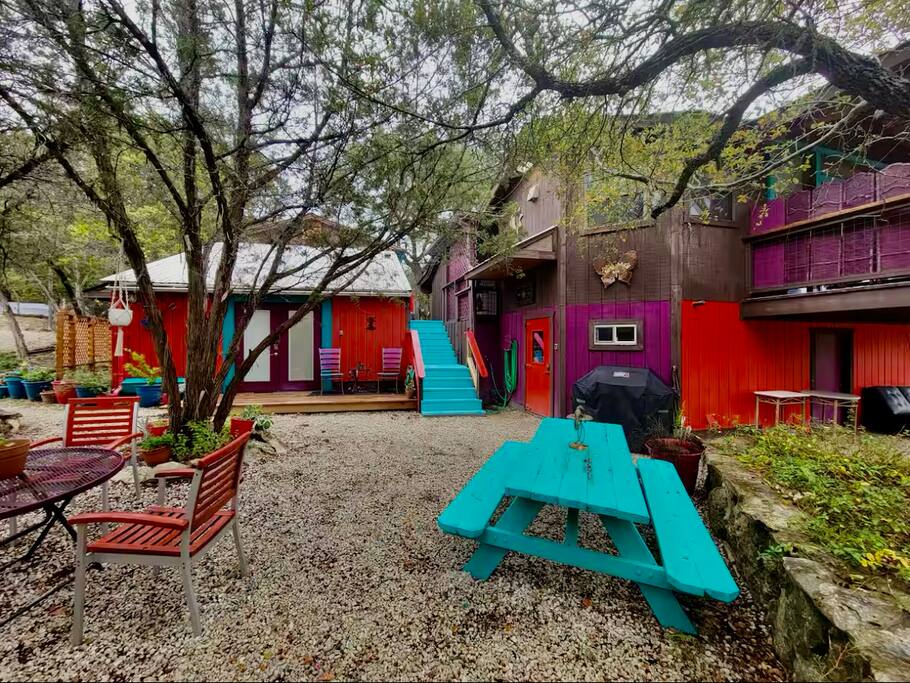 Located in the heart of the Texas Hill Country, Wimberley Wellness Casita comes fully equipped with a king bed, bathroom, living room, kitchen, free WiFi, a washer and dryer, and ample outdoor space with stunning hill country views that will leave you in awe. Boasting patios and decks with outdoor seating areas and a fireplace, where you can sip a glass of wine, listen to the rustling leaves, stargaze, or catch a glimpse of the local wildlife, this Casita is perfect for your dream escape! In our outdoor space, we have a plunge pool, grills, a fireplace, multiple areas to relax outdoors, as well as a private swimming hole in the creek below (please note the main creek access is private property, but we have our own area indicated by signs when you head down). Each home is accessible by multiple walkways in both the front and backyard. While we hope our stay provides you with a space to relax and unwind, we also are pleased to share that we are within a 5-15 minute drive of so many major Wimberley and Drippings springs hot spots! You are close to wineries (1 is about 1 mile away!) breweries, distilleries, and restaurants plus downtown Wimberley is less than a 10 minute drive! While the property offers peace and seclusion, guests should note that there are three additional rental units on-site, with some shared amenities.