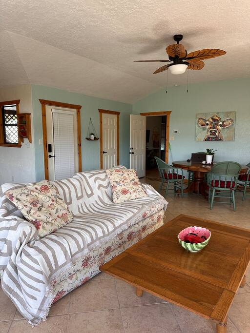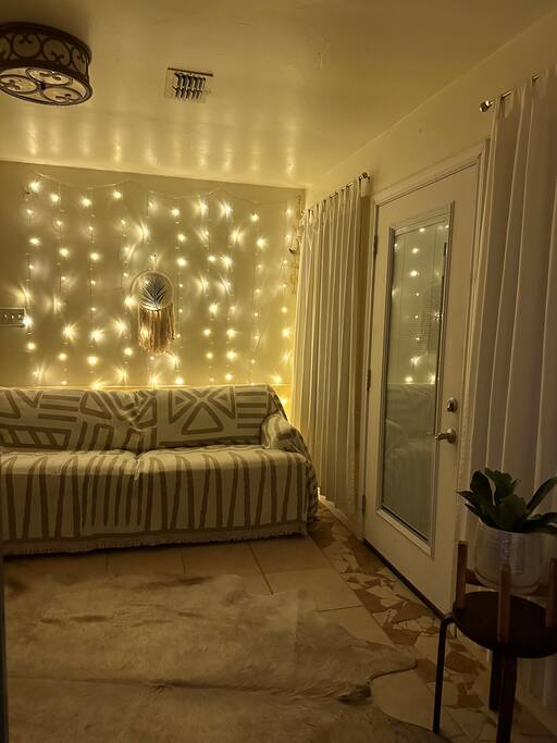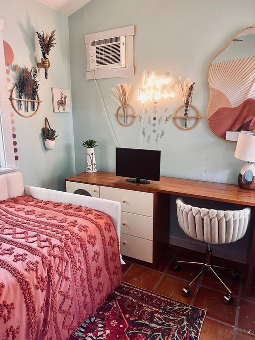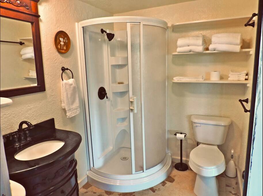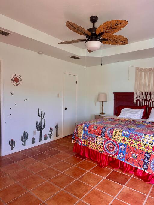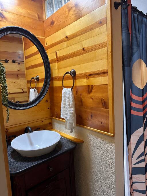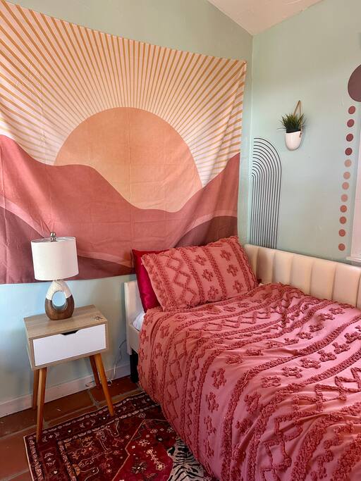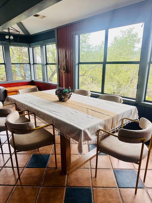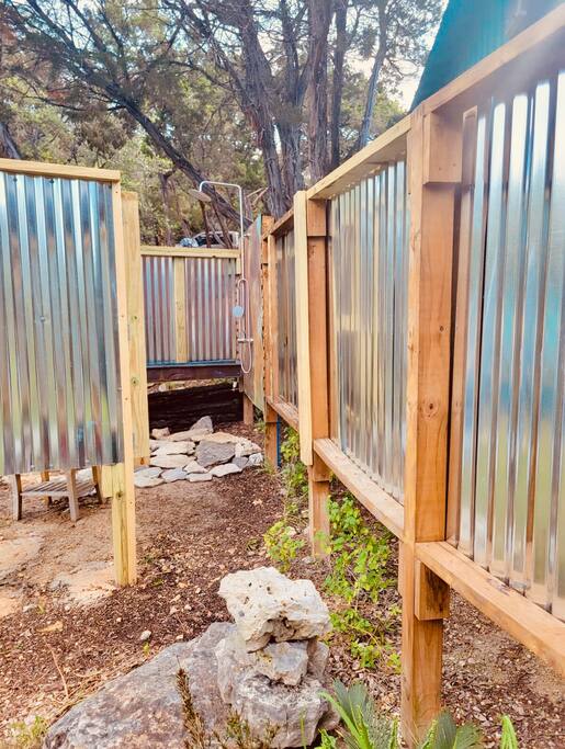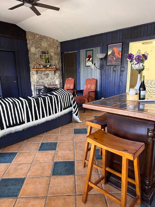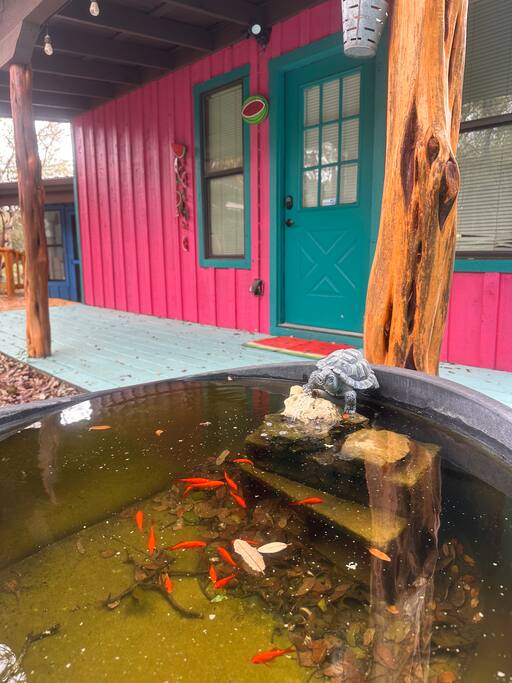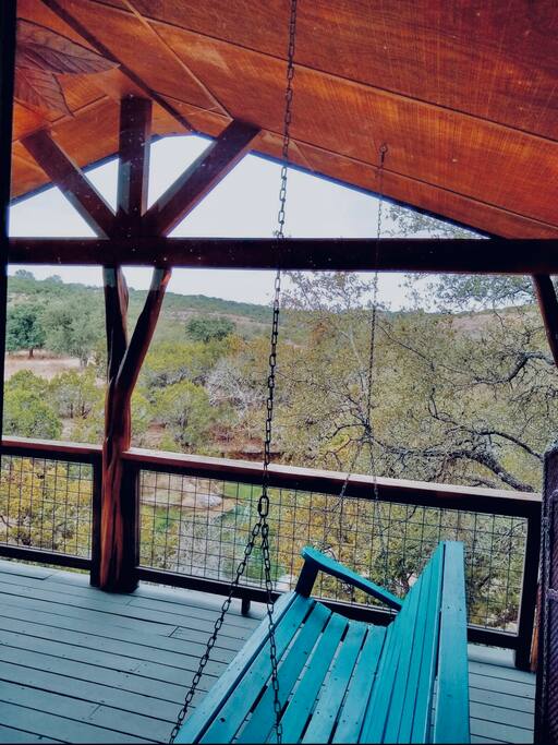 Wanting a grand and relaxing getaway? This booking guarantees you and your group have our whole property to yourselves! Our property is broken up by three main houses (each house included in individual photo description) Each main house is set up with a reverse osmosis system for all of your cooking and drinking pleasure! The first is our treetop home which is a 2 bedroom (both king beds) 2.5 bathroom home and our largest home. It comes with a fully equipped kitchen, living room, and indoor fireplace. The upstairs bedroom also has a balcony with views of the hills and plunge pool as well as an additional outdoor patio space in the front. The treetop home also has two sleeper sofas and an air mattress upon request. This unit can comfortably fit 6-8 guests. The second is our watermelon house, which is a medium sized 1 bedroom (king bed) with 2 bathrooms home. This house has a walk out balcony, with great views of the creek and rolling hillside and also comes with a fully equipped kitchen, living room, and sleeper sofa. The final is our casita, the smallest house with a king bedroom, bathroom, kitchen and living room. Think of this as a mother in law suite! There are also two very small “bunkhouses” available, each with a twin bed, mini refrigerator, wifi, and air conditioning. If interested in access, please inquire and we can provide additional details and pricing options. In our outdoor space, we have a plunge pool, multiple grills, a fireplace, multiple areas to relax outdoors, as well as a private swimming hole in the creek below (please note the main creek access is private property, but we have our own area indicated by signs when you head down). Each home is accessible by multiple walkways in both the front and backyard. Lastly, we are planning some major and exciting updates to our oasis, stay tuned!