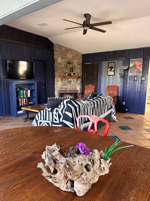 Welcome to your own private retreat, where you can immerse yourself in peace and tranquility. Wimberley Wellness Treetop House offers relaxation and rejuvenation, plus you'll have the entire ranch’s amenities to use for an unforgettable getaway. Unwind in the plunge pool, take in the breathtaking nature, grill up your favorite meal while looking out over the rolling hills, or stargaze under an international dark sky zone. Whether you're looking to enjoy a peaceful escape, indulge in nature, or simply reconnect, our Treetop Home offers everything you need for an extraordinary experience! Boasting patios and decks with outdoor seating areas and a fireplace, where you can sip a glass of wine, listen to the rustling leaves, stargaze, grill out, or catch a glimpse of the local wildlife, this unit is perfect for your dream escape! In our outdoor space, we have a plunge pool, grills, a fireplace, multiple areas to relax outdoors, as well as a private swimming hole in the creek below (please note the main creek access is private property, but we have our own area indicated by signs when you head down). Each home is accessible by multiple walkways in both the front and backyard. While we hope our stay provides you with a space to relax and unwind, we also are pleased to share that we are within a 5-15 minute drive of so many major Wimberley and Drippings springs hot spots! You are close to wineries (1 is about 1 mile away!) breweries, distilleries, and restaurants plus downtown Wimberley is less than a 10 minute drive! While the property offers peace and seclusion, guests should note that there are three additional rental units on-site, with some shared amenities.