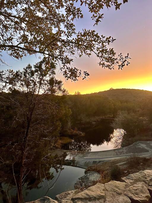 Wimberley Wellness is a one acre property tucked away in a canyon at the end of a quiet, dead-end road. We’re halfway between Wimberley and Hays City, just a 10 minute drive to both. It’s a perfect blend of hill country solitude and high quality restaurants, wineries, breweries, and parks. Our property drops down from the road towards the beautiful, spring-fed Lone Man Creek, which feeds into the Blanco River a few miles downstream. We’re located in an International Dark Sky Area (Wimberley won the International Dark Sky Place of the Year award in 2023!). There is very minimal development on neighboring properties, there are only a few spots on the property in which you can see any other homes in the canyon. It feels like you’re in your own world! With our secluded location in the hill country, you may spot resident foxes, deer, Painted Buntings, Purple Martins, turkeys, hummingbirds, or herons, all of which are routinely seen on our property. We gladly welcome pets, but please watch them carefully with the wildlife in mind. We also take pest control very seriously, but please remember you’re in the country. Keeping doors closed as much as possible will help to ensure the wildlife stays outside!
